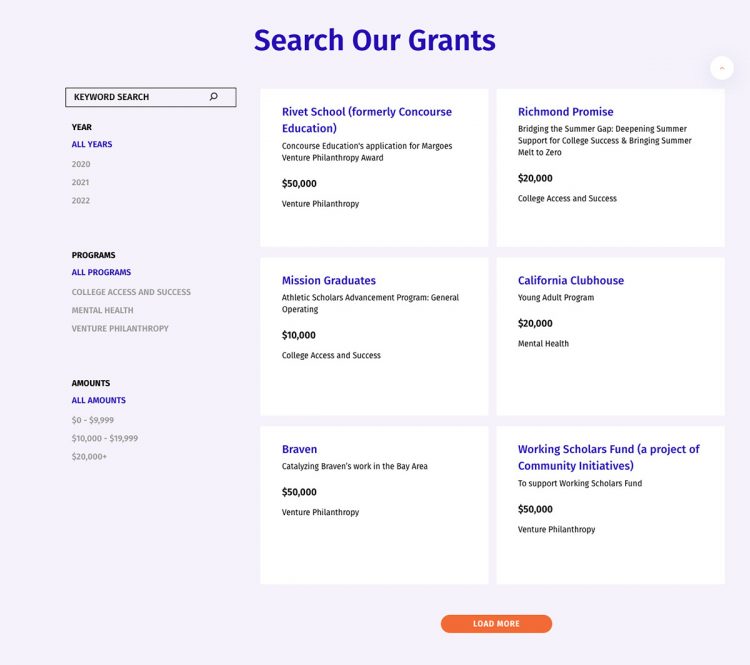 Using a WordPress multi-site installation and modular approach, twelve separate sites were built running on the same theme and hosting environment. Each site has unique styles and features, reflective of the spirt and purpose of each foundation.